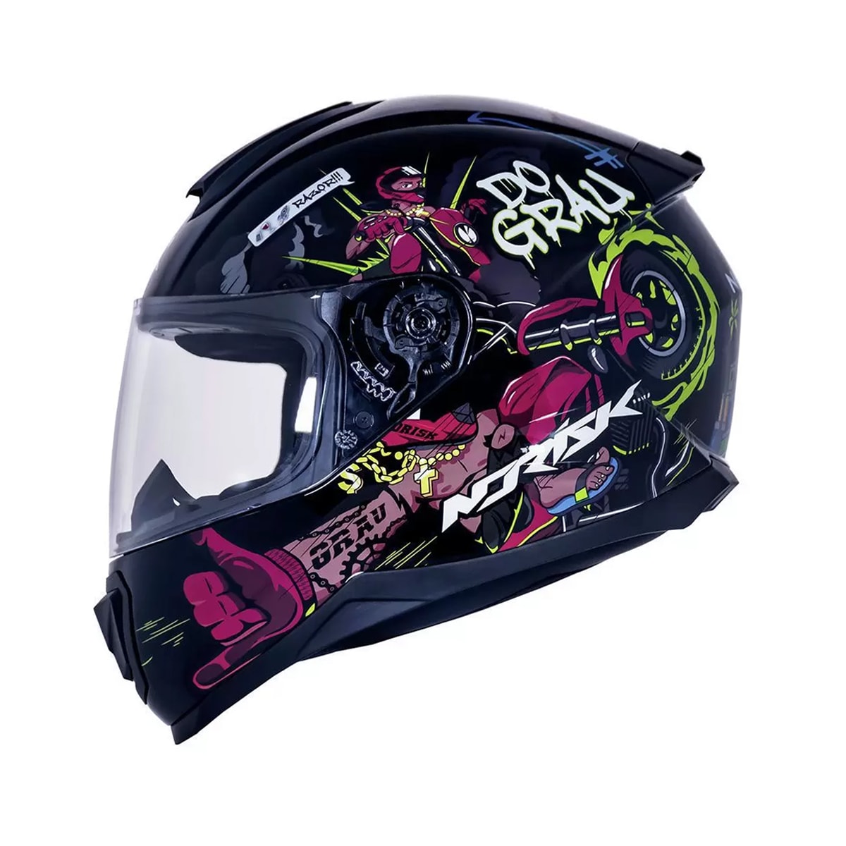 Novo Norisk RAZOR feito para quem passa muito tempo com a moto e precisa de um capacete leve e compacto, ou para motociclistas que buscam o máximo de conforto na hora da pilotagem.