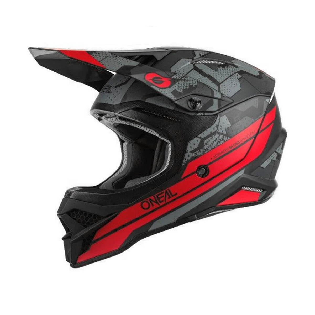O Capacete Oneal 3Series Camo garante a máxima performance durante sua pilotagem, sem abrir mão do conforto e da segurança. Sua construção principal é composta de uma estrutura leve de ABS Moldado e Injetado diretamente no EPC, o que proporciona extrema leveza, além de manter a durabilidade e resistência contra os mais variados tipos de impactos e quedas, bem como uma ótima fixação para a tira do óculos de motocross. A modelagem e composição do Oneal 3Series confere um ajuste ainda mais preciso na cabeça, além do fechamento com ajuste Duplo D que eleva a proteção e estabilidade em trilhas ou provas offroad, independente da intensidade de uso. Para melhor segurança no rosto do piloto, o Capacete de Motocross 3SRS conta com narizeira em borracha flexível, isso impede um impacto direto de sujeiras e detritos das pistas e trilhas.
